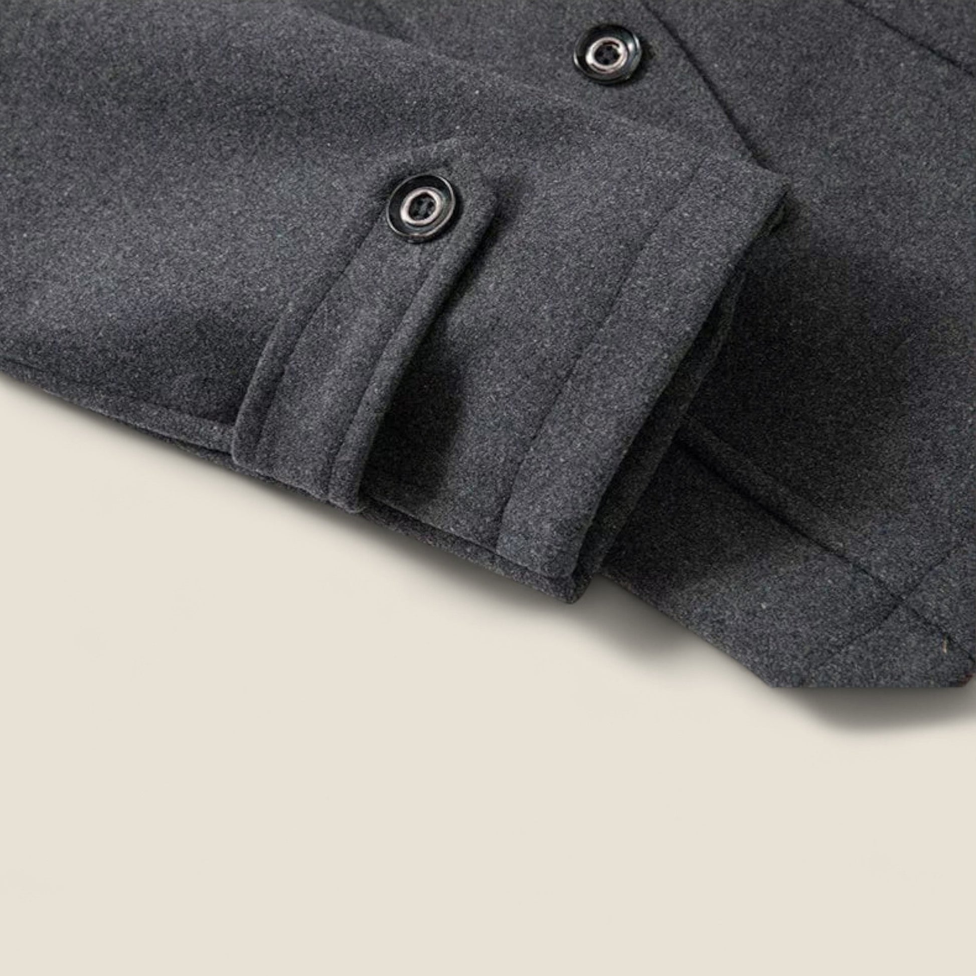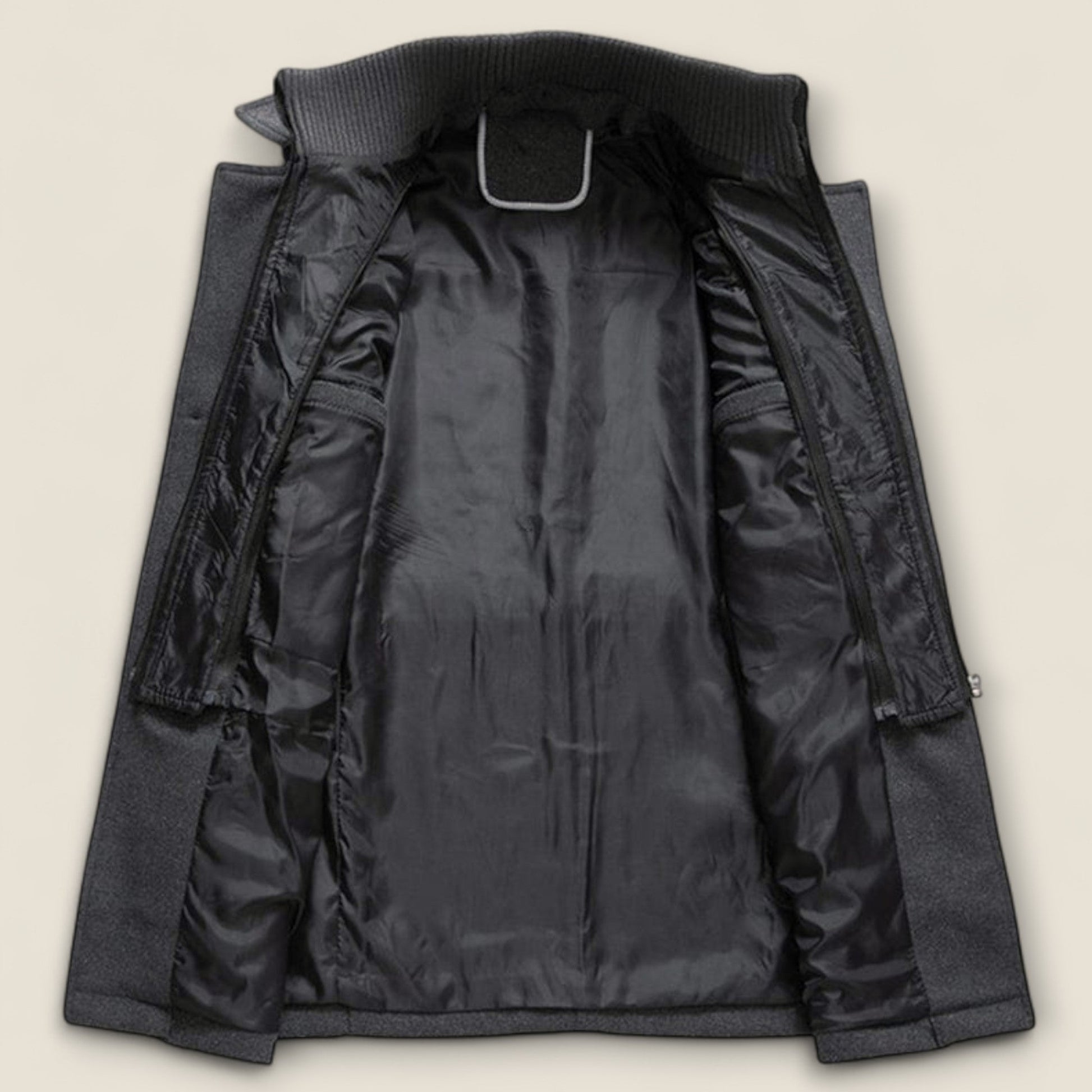 - Sofistikerede Designelementer: Med en struktureret krave, rene linjer og strategisk placerede lommer, sikrer denne frakke et poleret look ved hver vending.