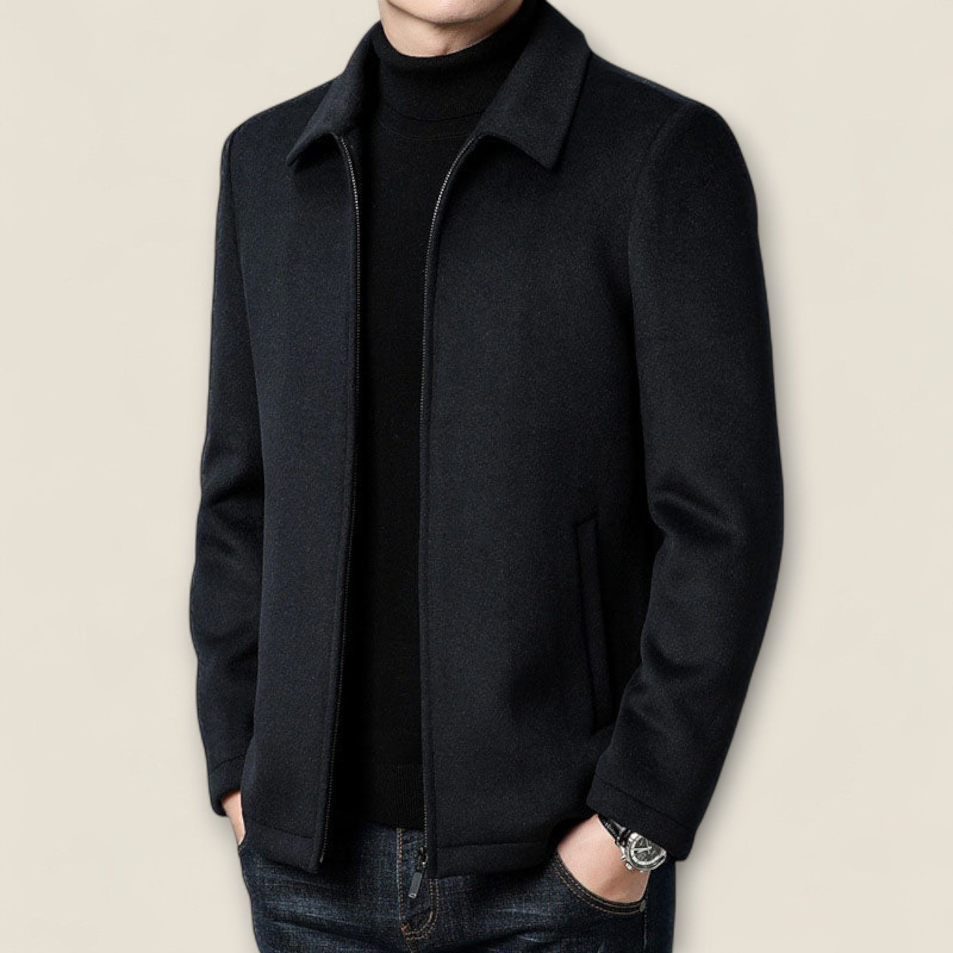 Hold dig varm med stil! Vores premium tætte uldblandingsjakke er designet til at blokere vind og bevare varmen uden at være klodset. Med en ren lynlåslukning foran og en skarp spidskrave, tilbyder denne jakke en raffineret, strømlinet profil, der er perfekt til enhver lejlighed.