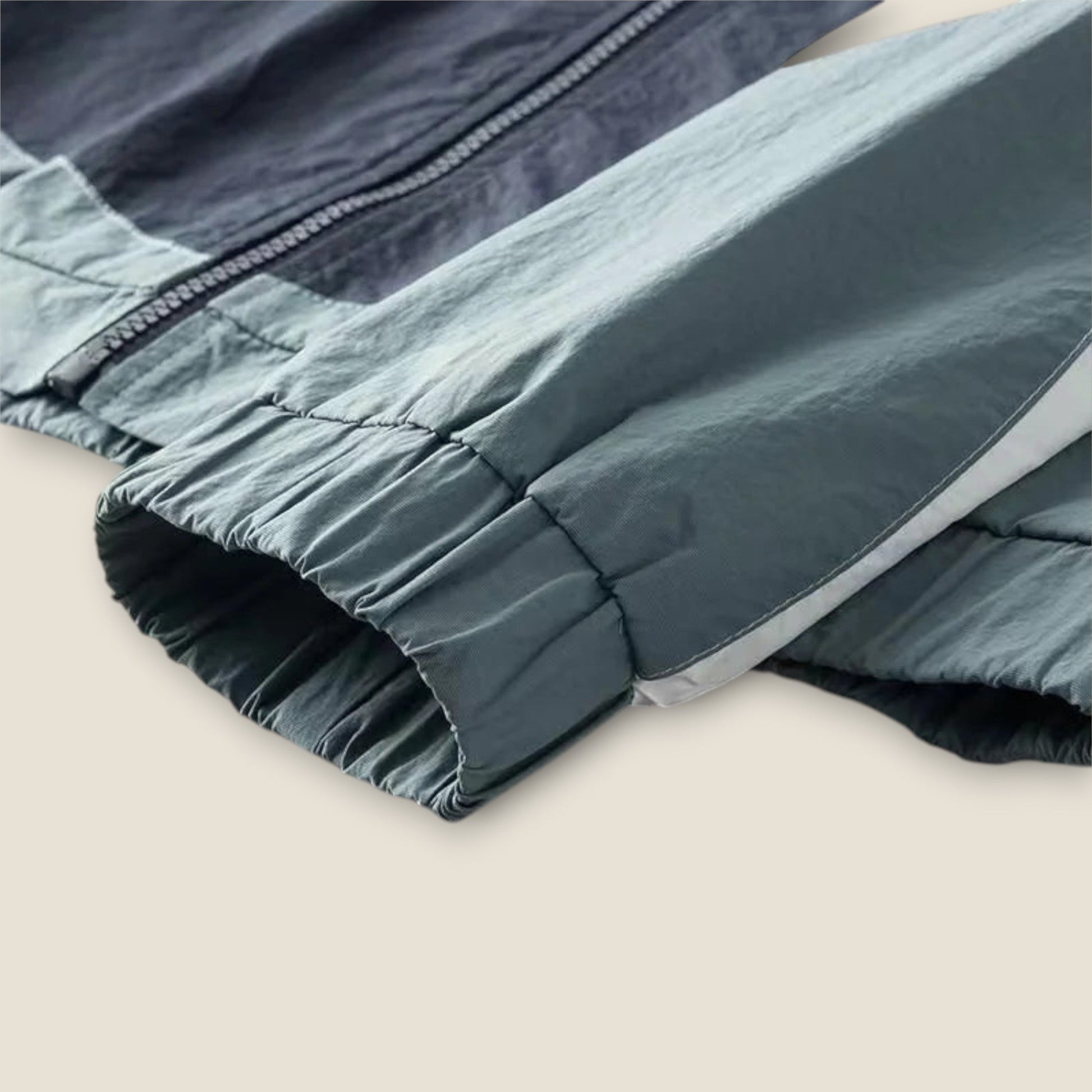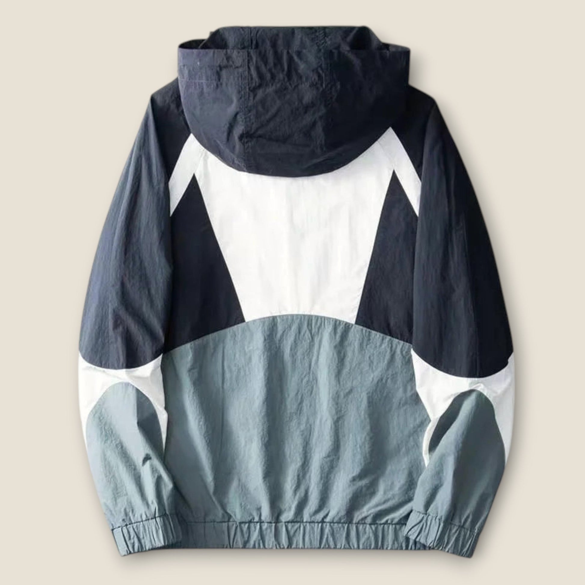 Med modige farveblokpaneler ser du uanstrengt chic ud, mens du sprintes gennem dråberne. Den mesh-forede hætte kan justeres for en perfekt pasform, og de sikre lynlåslommer giver sikker opbevaring af dine nødvendigheder.