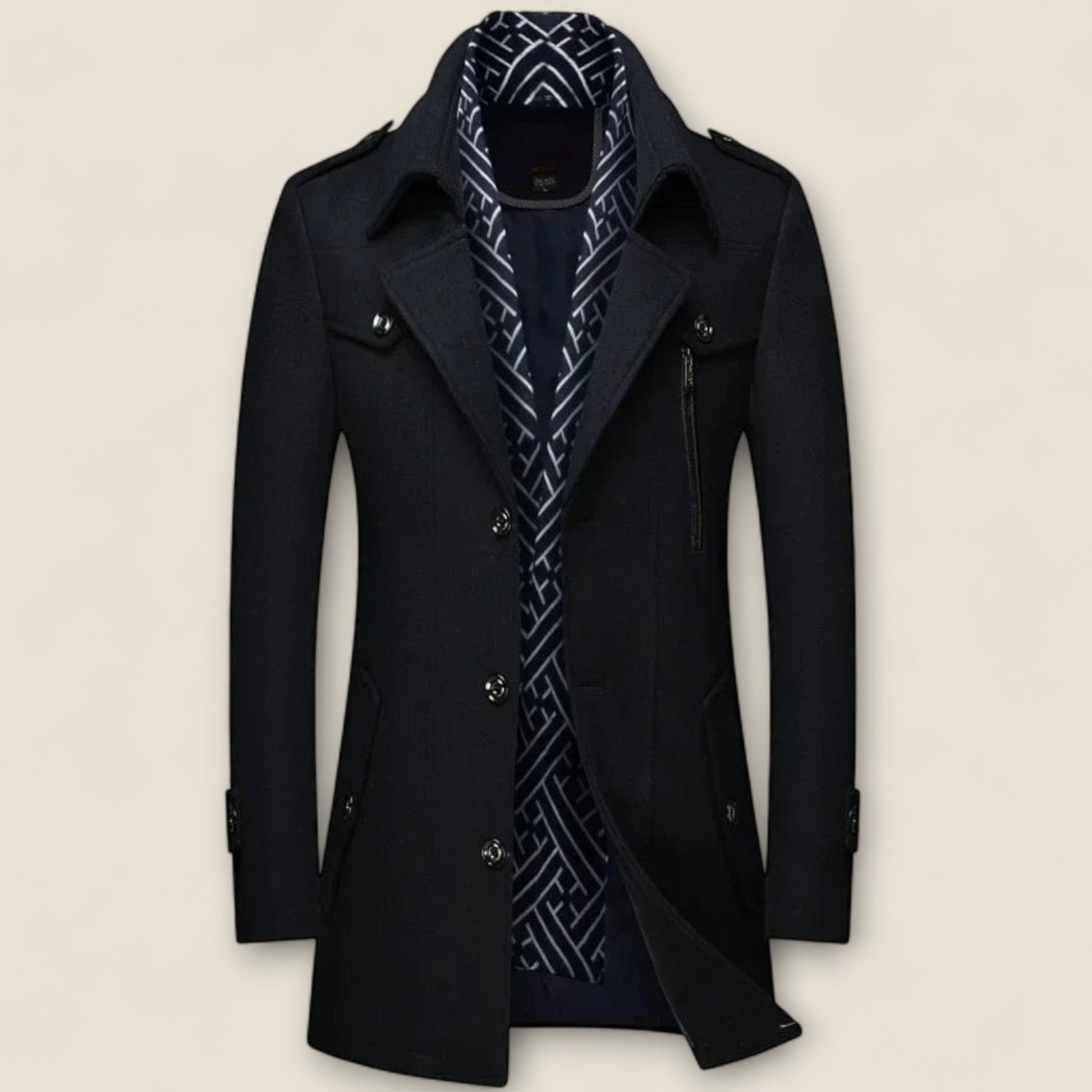 Hold dig varm og stilfuld med vores skræddersyede frakke, designet til uovertruffen komfort og et poleret look. Perfekt til både afslappede og formelle anledninger, tilføjer denne frakke et strejf af elegance til din garderobe, mens den beskytter dig mod elementerne.