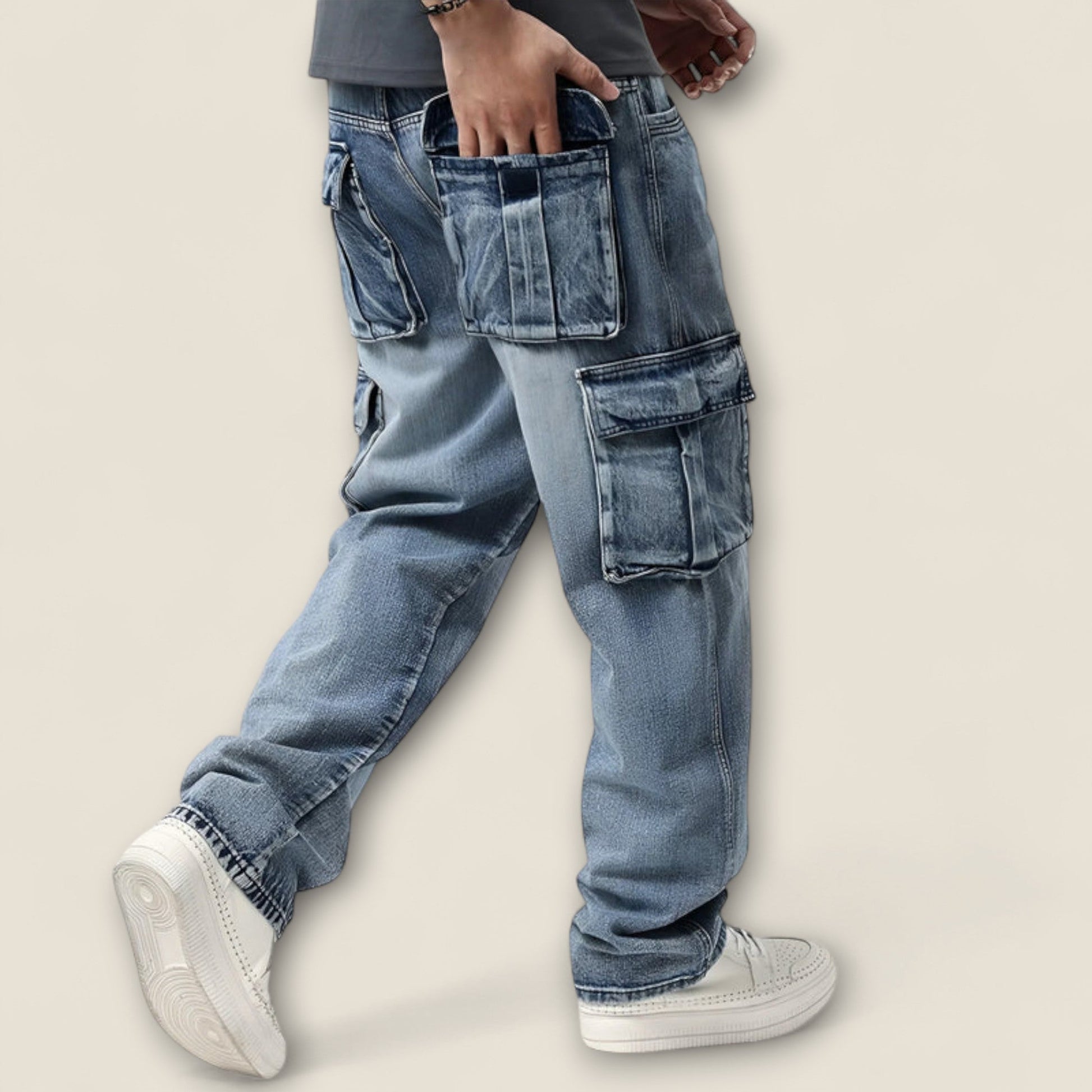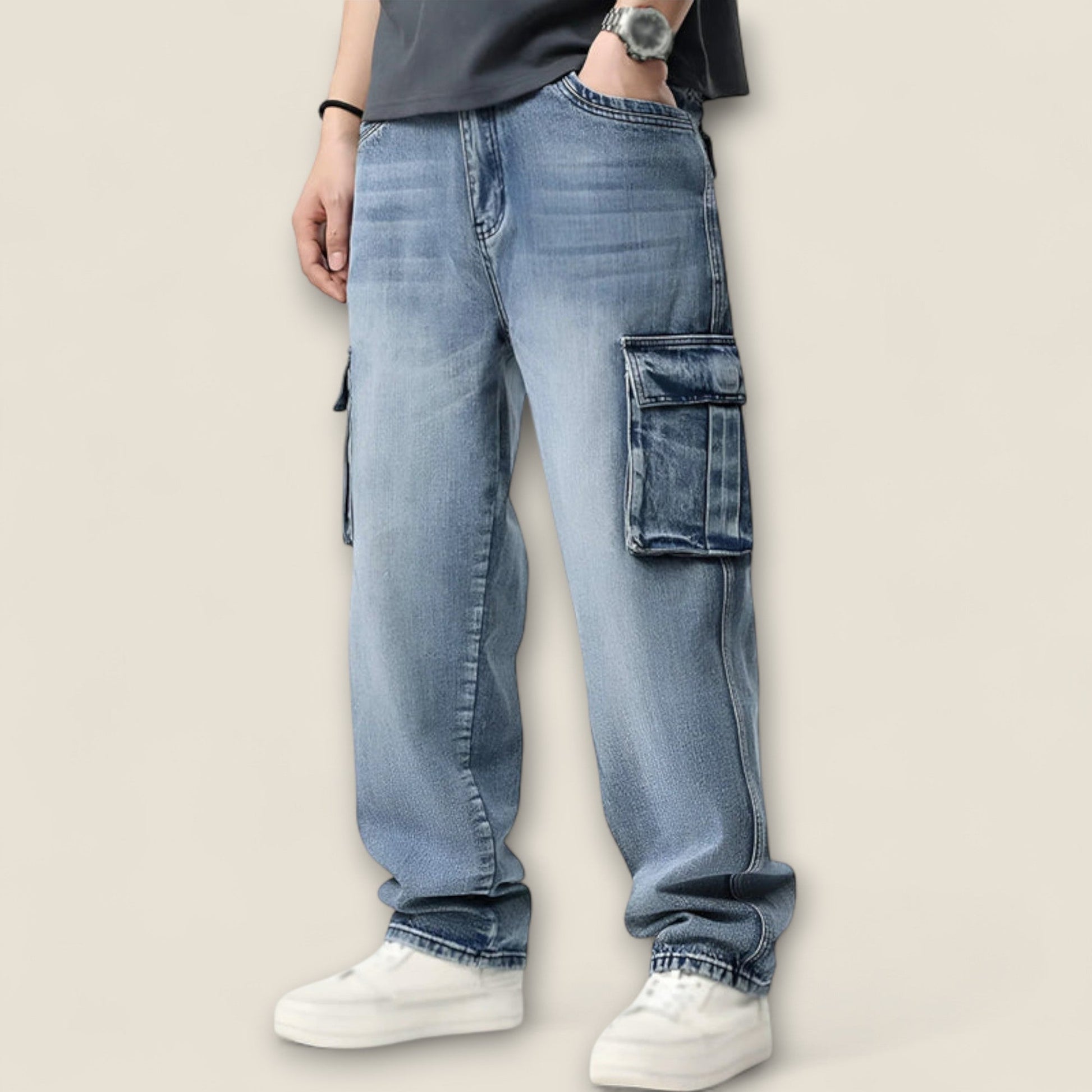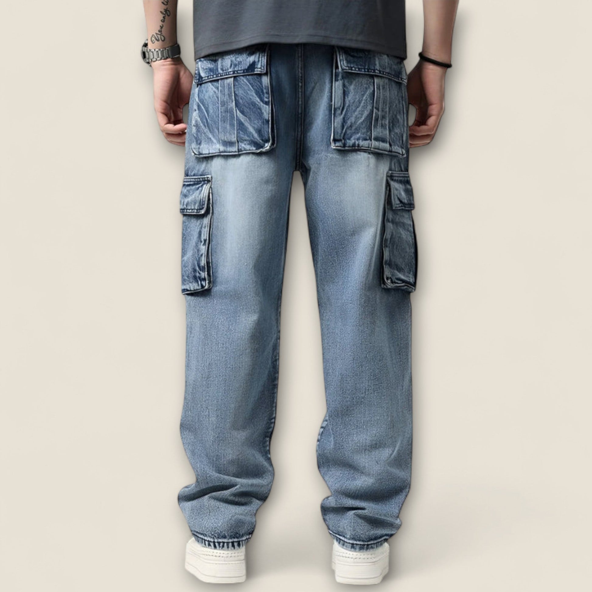 Designet med en afslappet silhuet og subtil tapered ben, er denne denim perfekt til et moderne look. De karakteristiske oversized cargo-lommer tilføjer funktionalitet, mens forstærkede sømme sikrer højtydende holdbarhed.