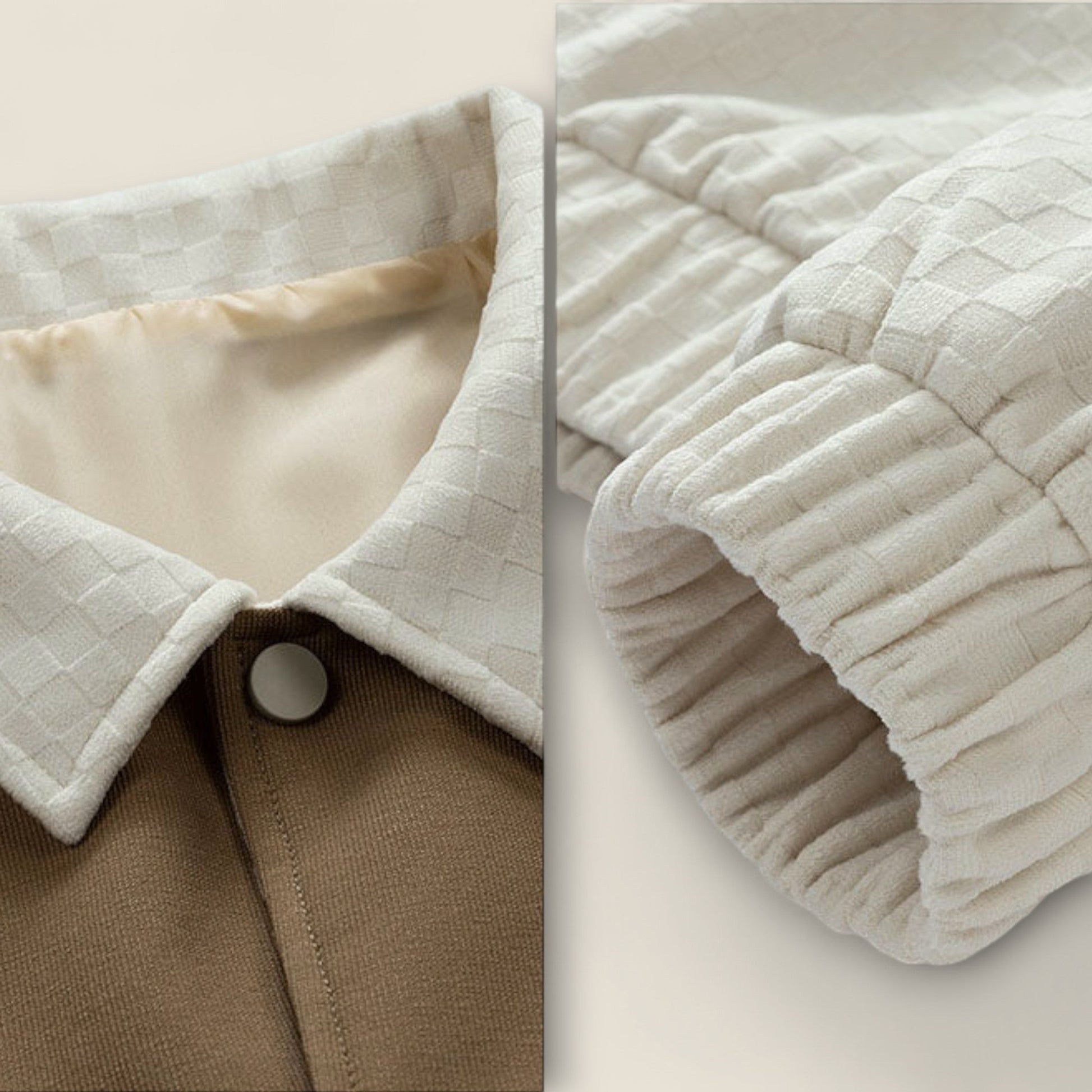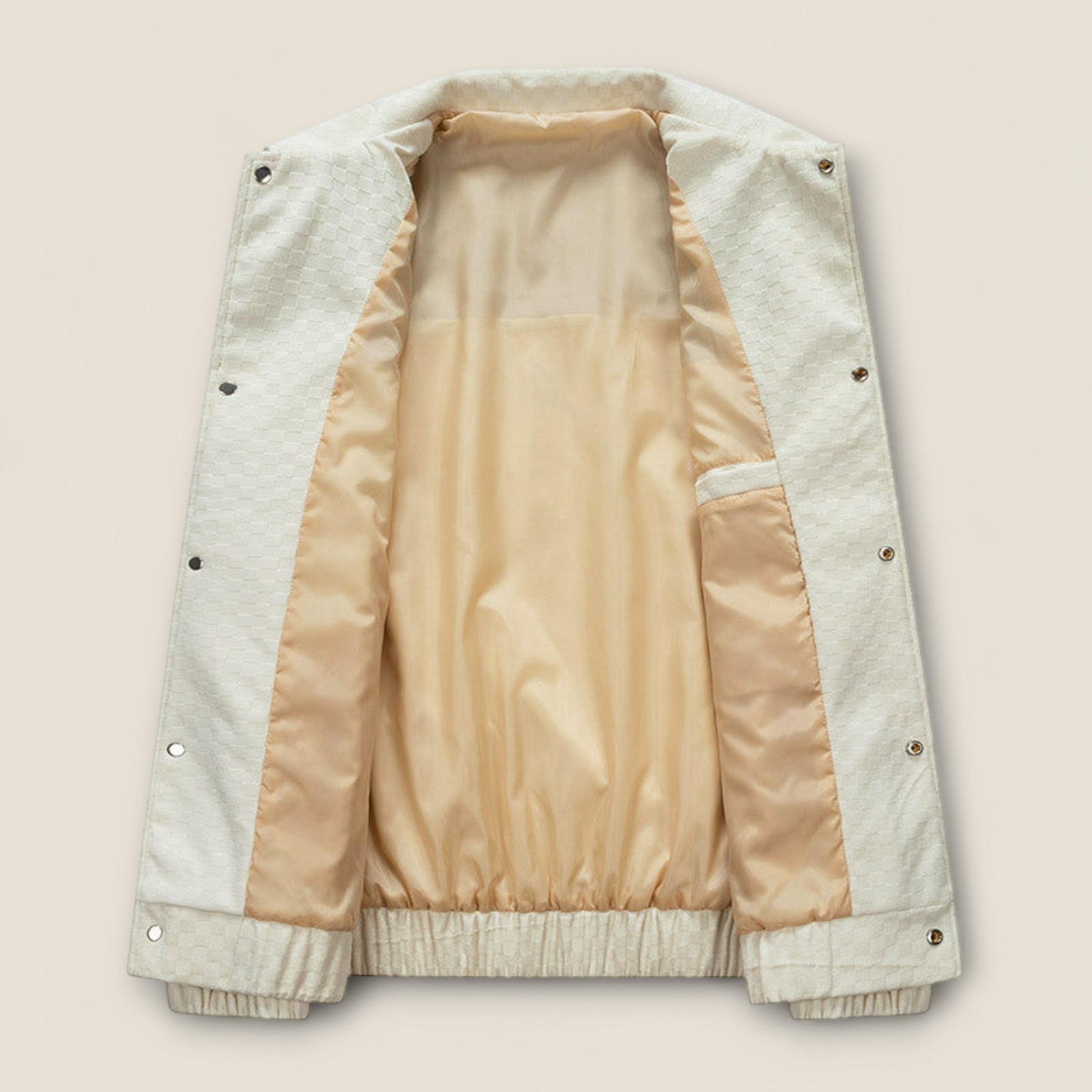 Med en trykknaplukning foran og en struktureret krave udstråler denne jakke sofistikering. De elastiske manchetter og skræddersyede kant giver en behagelig og sikker pasform, hvilket gør den ideel til enhver lejlighed.