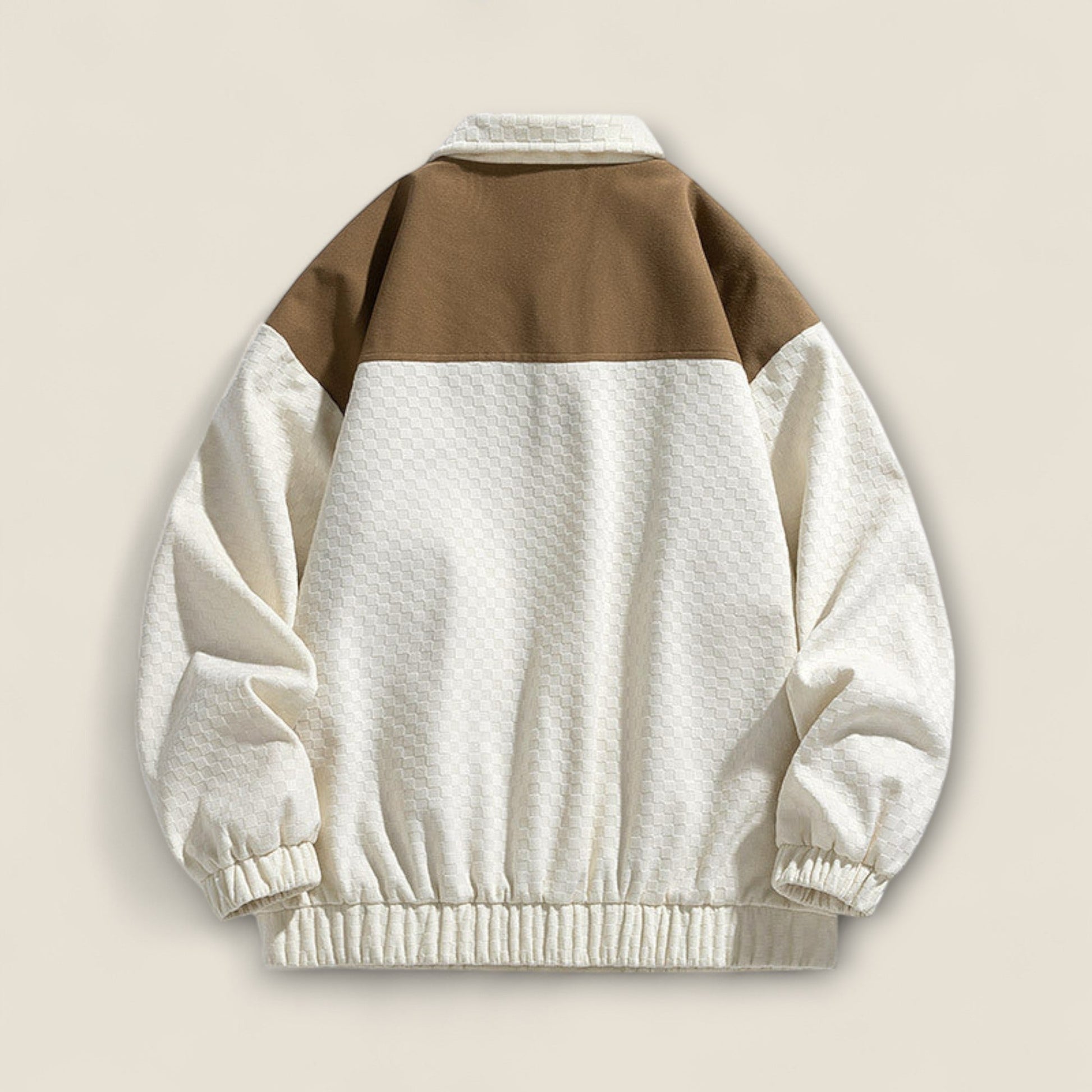 Defineret af sit modige to-farve farveblokdesign, er denne jakke perfekt til dem, der ønsker at gøre indtryk. Det teksturerede vævede stof tilføjer dybde og dimension, hvilket sikrer, at du skiller dig ud i enhver mængde.