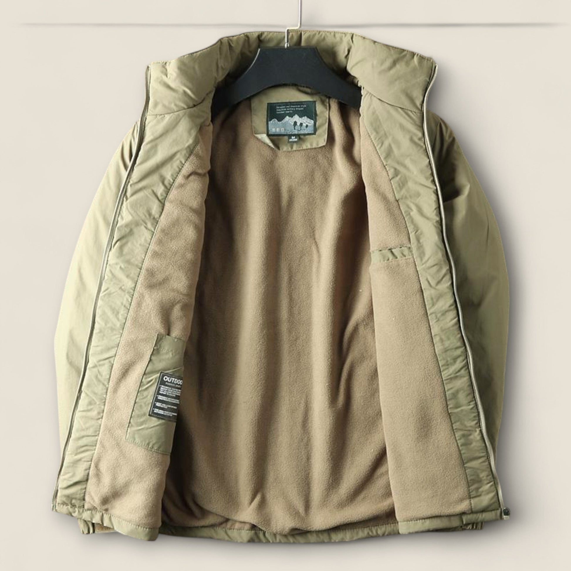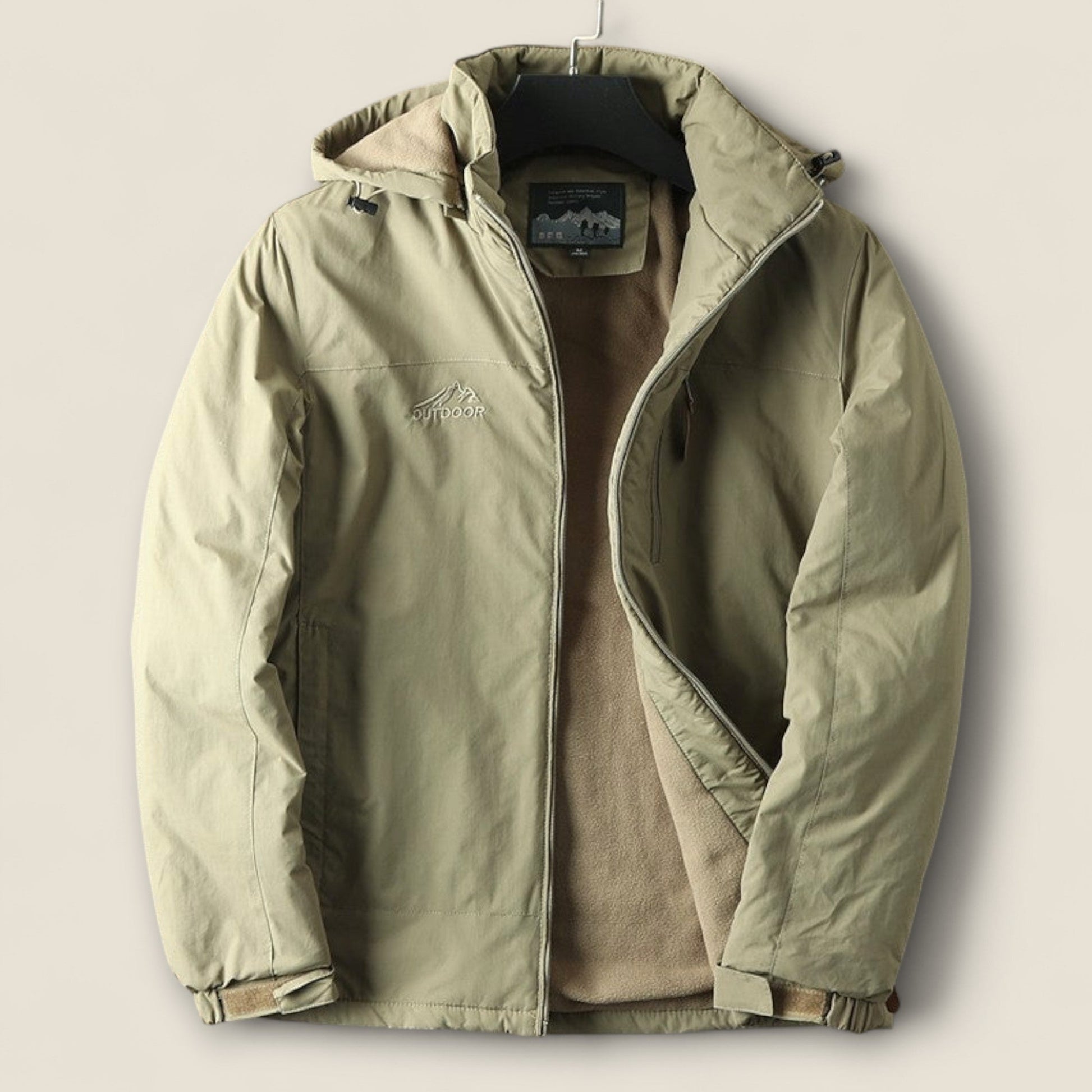 - Hætte: Fast hætte med foring for ekstra varme