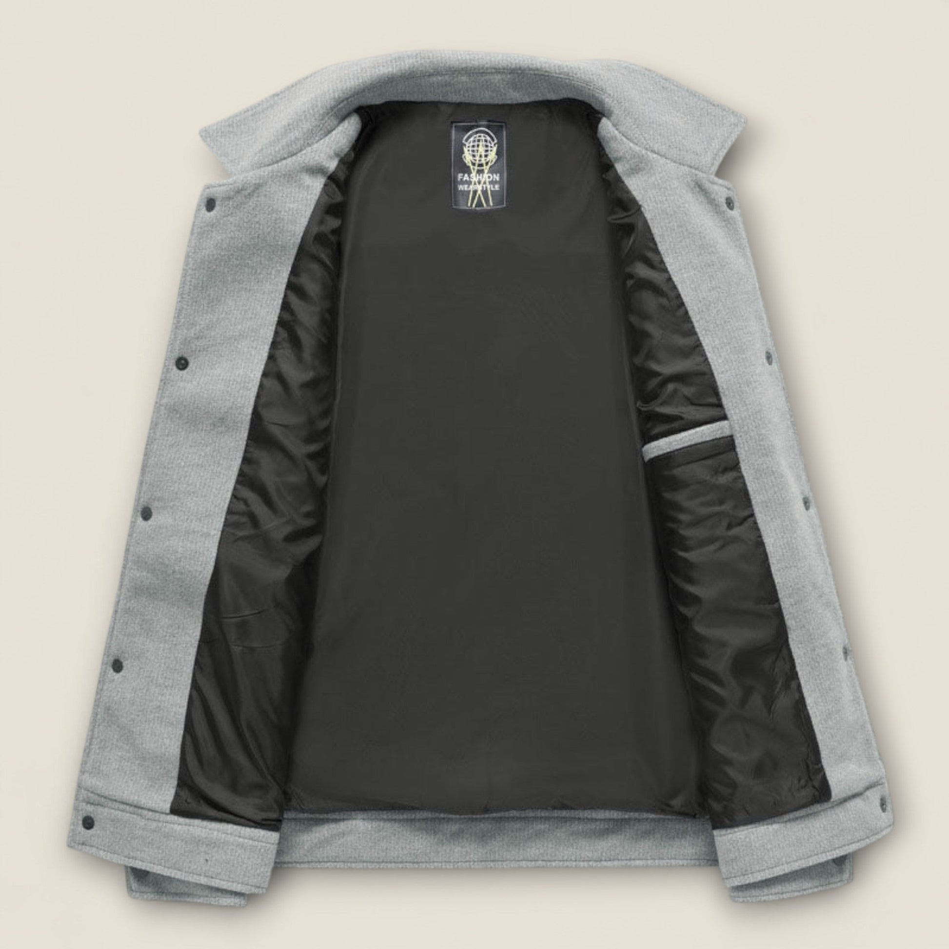 Hold dig varm med stil! Vores premium uld skaljakke giver enestående isolering mod kulden, samtidig med at den sikrer holdbarhed til daglig brug. Den har en knaplukning foran for nem lukning og to forlommer med klap for ekstra bekvemmelighed, hvilket gør denne jakke til en kombination af funktionalitet og et elegant design.