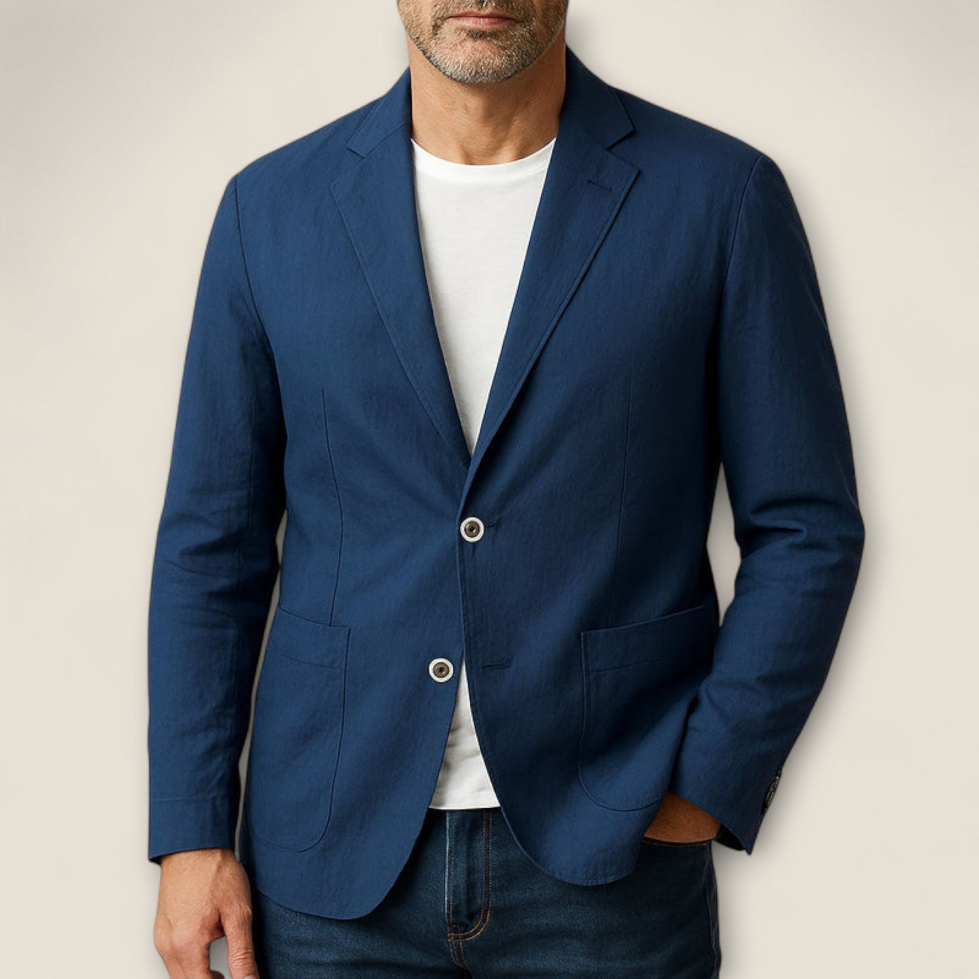Gå ikke glip af denne stilfulde blazer, der er lavet af en let, åndbar bomuldsblanding, som tilbyder struktur uden at være klodset.
