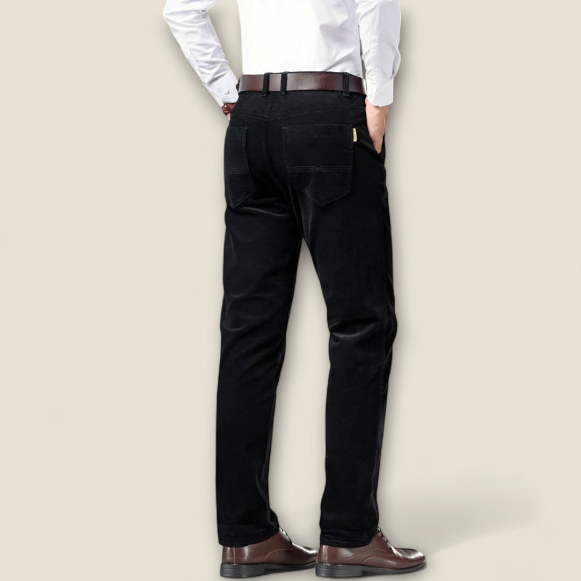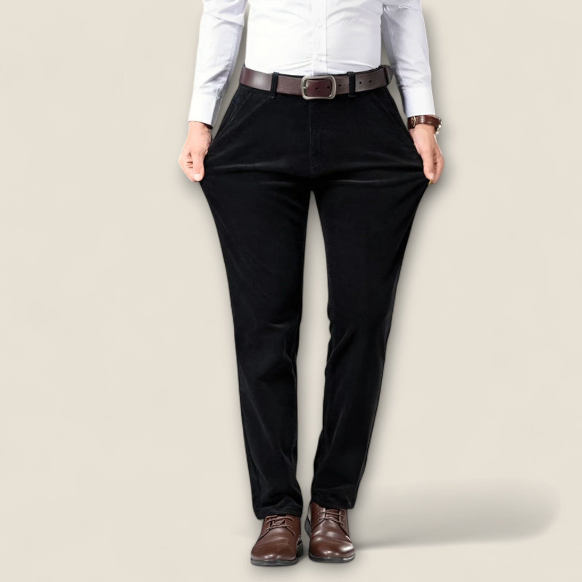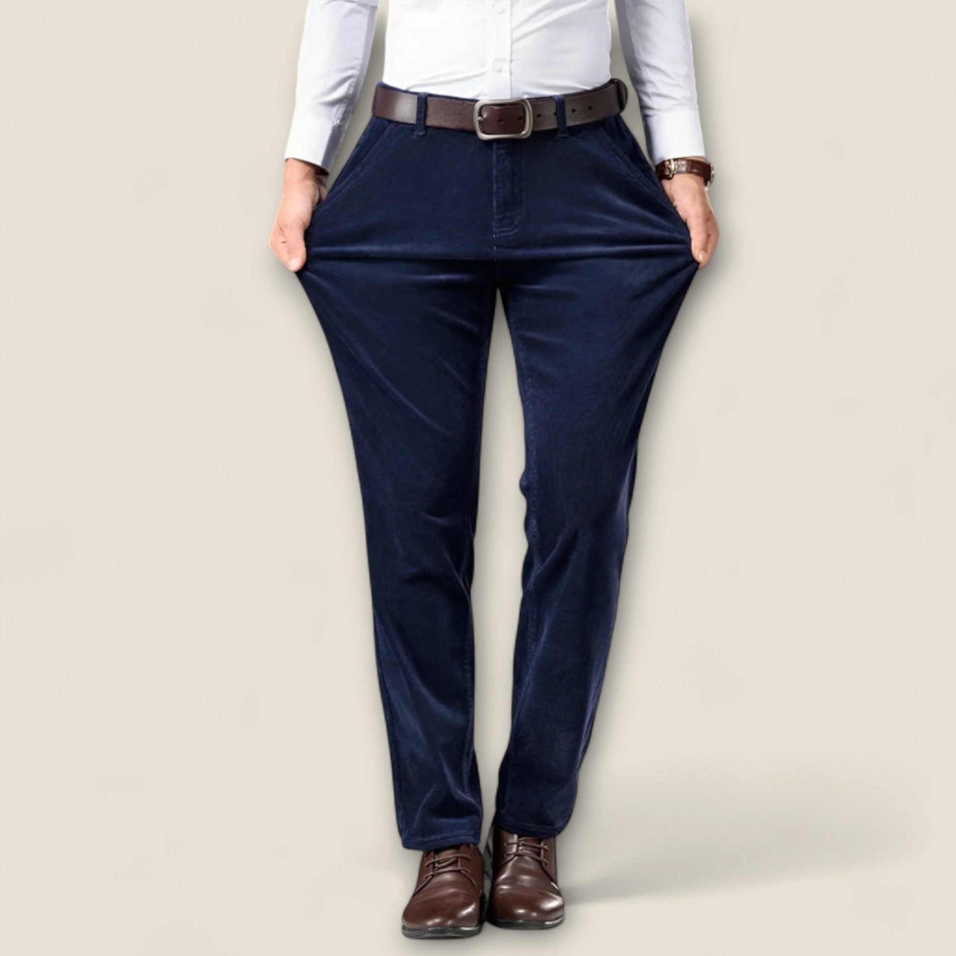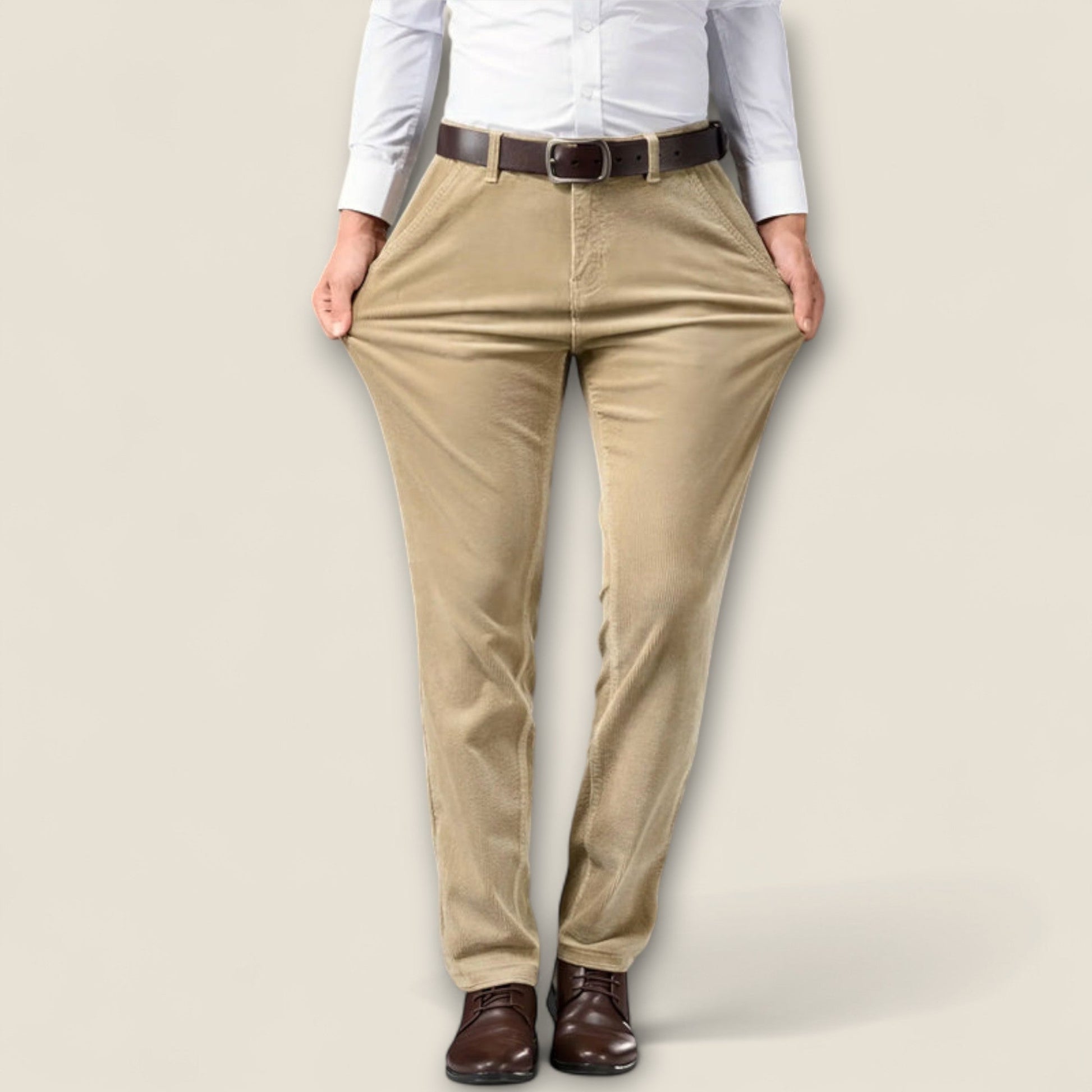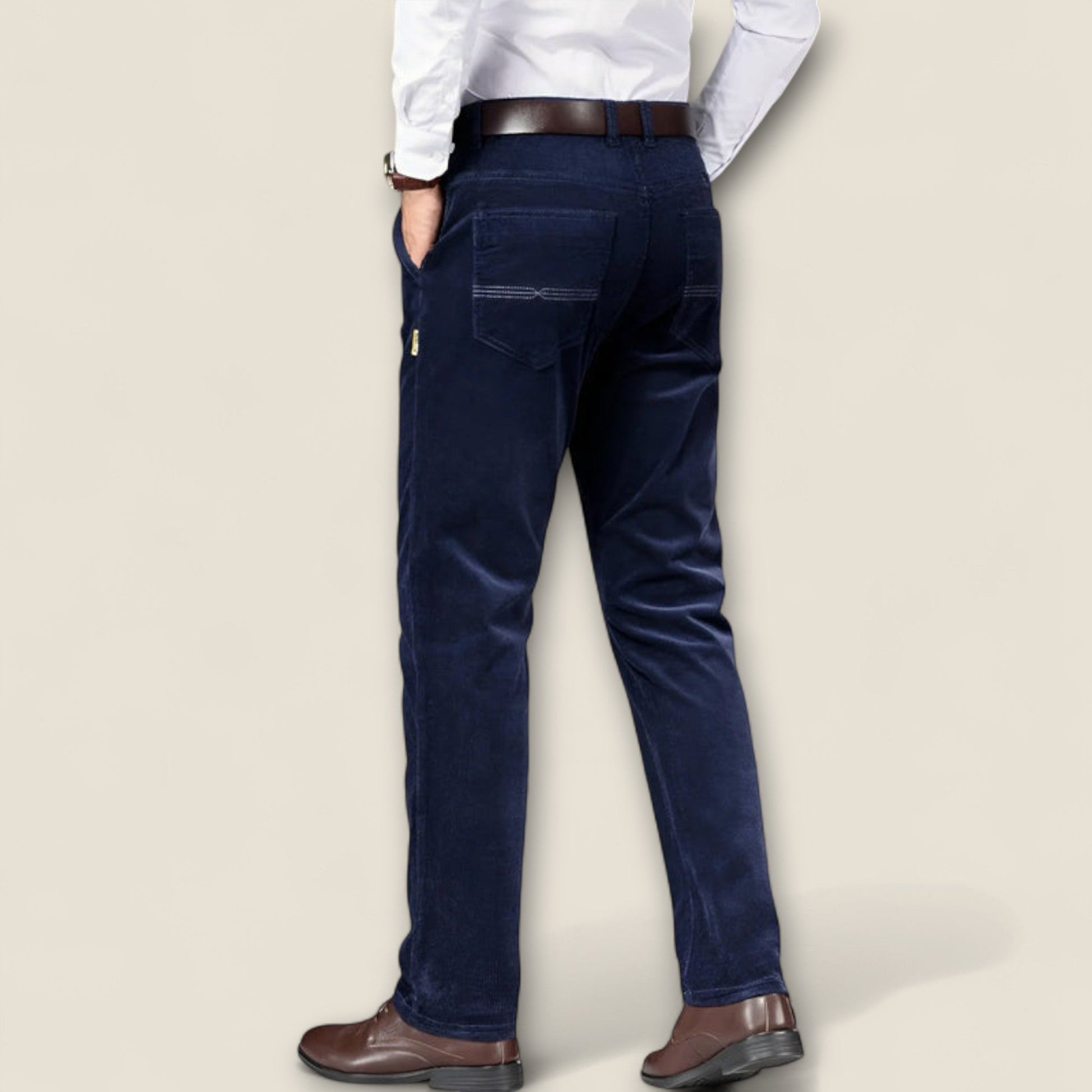 Fremstillet af premium mid-wale bomuldsfløjl, tilbyder dette stykke en rig tekstur og robust struktur. Den lige ben silhuet er designet med forstærkede bæltestropper og dobbelt-nålssømme, hvilket sikrer langvarig styrke uden ekstra bulk.