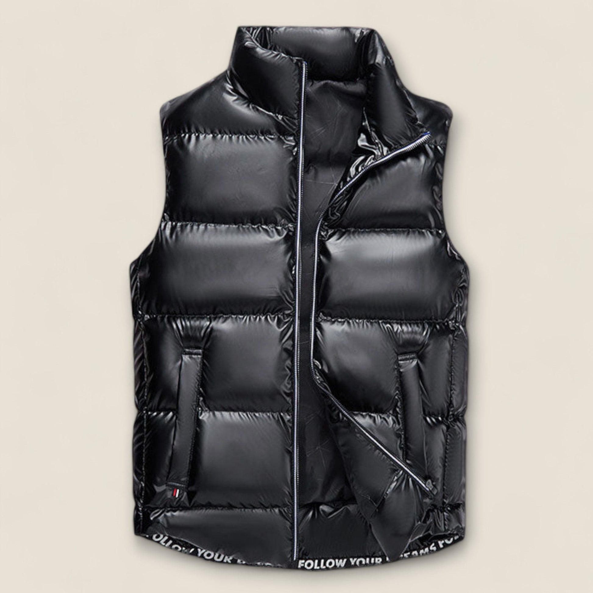 Hold dig varm og stilfuld! Vores lette vatterede vest er designet til at give fremragende isolering mod kulden uden den bulky fornemmelse, som traditionelt overtøj har. Med en slank ærmeløs skæring og en fuld lynlås foran, sikrer denne vest et strømlinet look, der er perfekt til lag-på-lag.