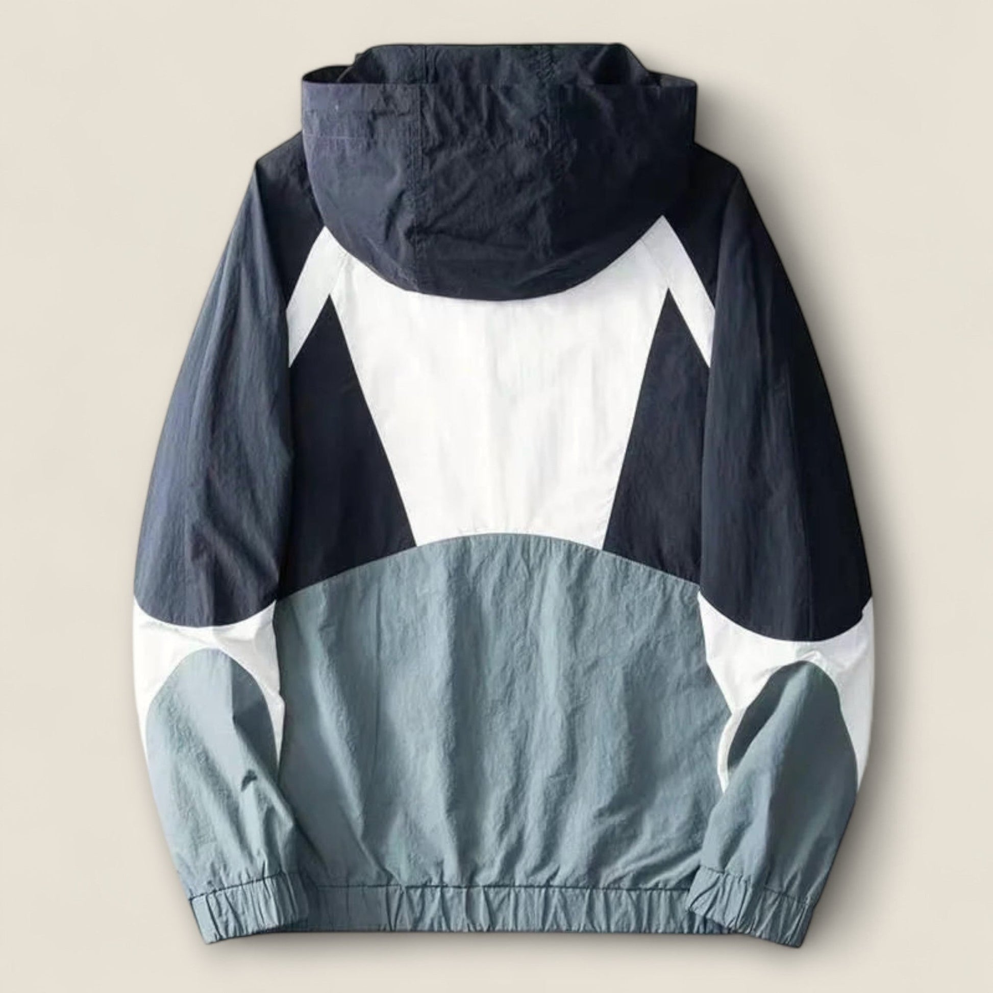 Hold dig tør med stil! Vores vandafvisende skaljakke har en justerbar hætte og lynlåslommer, så du kan holde dig tør og organiseret under de uventede regnbyger. Det iøjnefaldende farveblokdesign gør hver udflugt til en stilfuld og bevidst oplevelse.